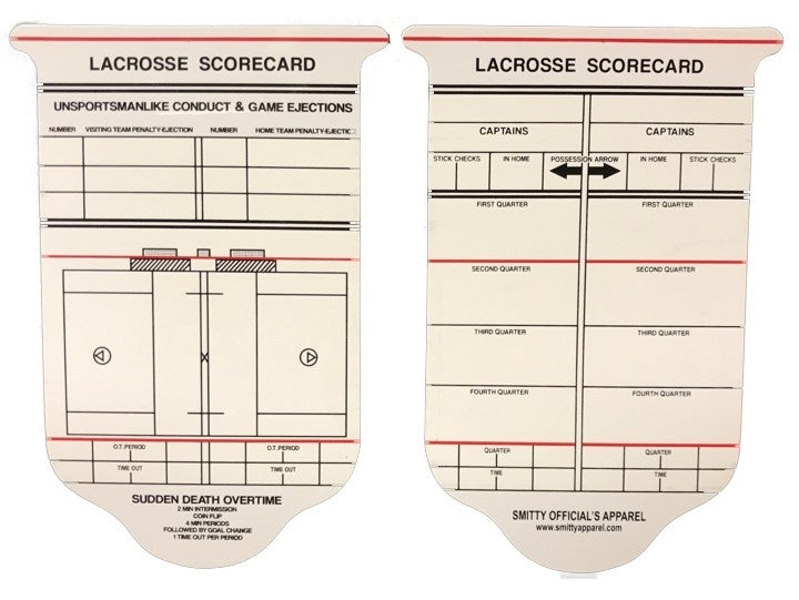Lacrosse Referee Official's Pocket Scorecard- Game Card Features Include: Laminated, Reusable Plastic That Is Easy to Write On. The Template Design Dimensions Are 1.25" * 3" * 5" Height, Which Accurately Measures The NCAA Men's Lacrosse Head Standards.