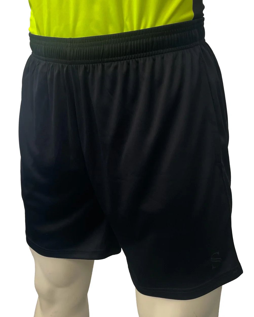Smitty Soccer Referee Shorts - Features Include: Black Lightweight 100% Polyester Material. Side Seam Pockets. 6" Inseam. Back Right Pocket With Velcro Enclosure.